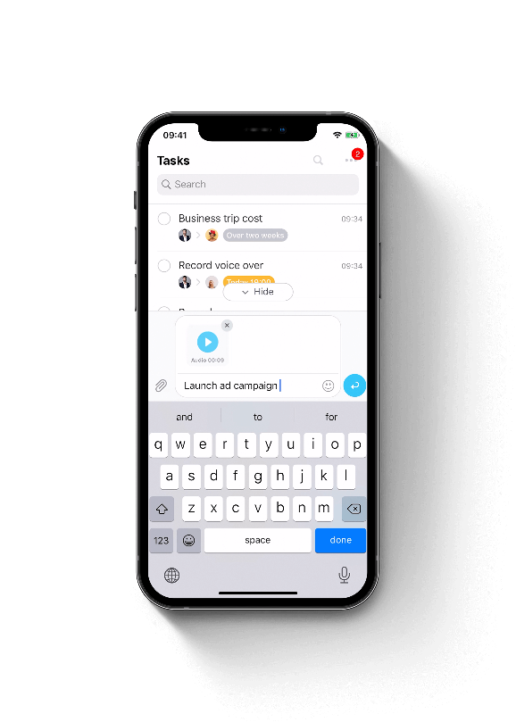 Надиктуйте условия, укажите ответственного и сроки. Запись голоса автоматически прикрепится к описанию задачи и ничего не потеряется.