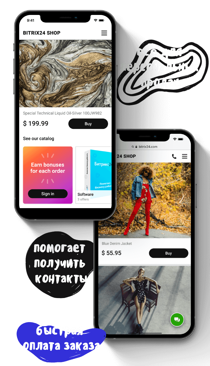 Запустить продажи в онлайне ещё никогда не было так легко. Всего пара кликов и ваш интернет-магазин готов! Разместите ссылку в соцсетях и начните принимать заказы. Сайт поможет вам получить контакты клиента — просто созвонитесь с ним и помогите совершить покупку